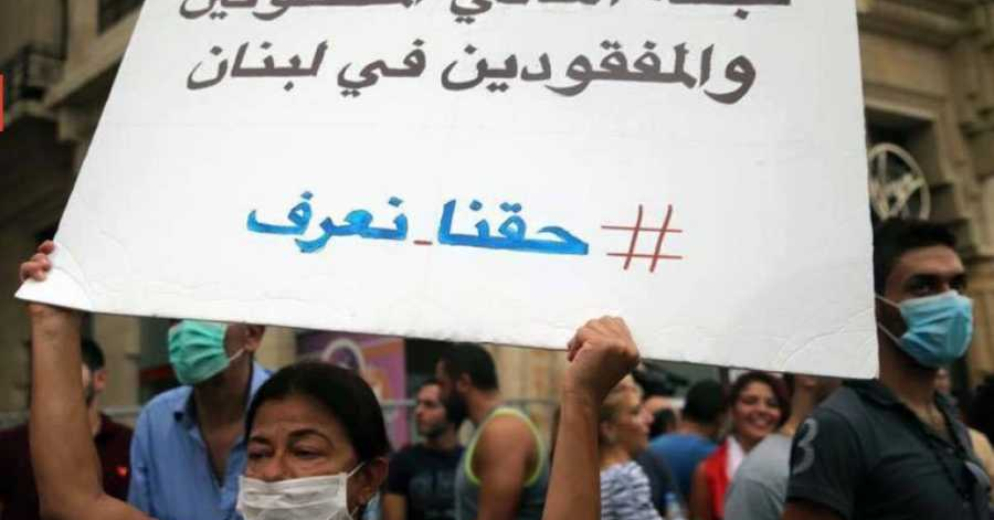 وتابعت: "نحن، أهالي مفقودي تلك الحرب لن نمل من ترداد عبارات تحكي عن المعاناة التي ترافق يومياتنا منذ ما يقارب العقود الخمسة. نحن، لن نكل من تكرار كلمات تصف أنواع الظلم الذي ارتكب، ويرتكب كل يوم، بحقنا وحق مفقودينا. نحن، لا نظن أن أحدا قد يتردد بالمجاهرة بمقدار مثابرتنا وتحملنا واجتهادنا للخلاص والخروج من وضعية الضحية. لنفجع بكارثة بشرية حصدت آلاف الضحايا بين قتلى وجرحى ومعوقين ومهجرين ومفقودين جدد في زمن ما سمي سلما". إن سقوط هؤلاء الضحايا في تفجير 4 آب 2020، والذين ما زالوا يتساقطون، نأمل أن تكون جوليا عودة وريتا حرديني آخرهم. إن ما حصل يؤكد قناعتنا "إنو الحرب ما خلصت"، ويجعلنا نستغرب بعض الأصوات الاعتراضية على إصرارنا ومطالبتنا بحقنا بمعرفة مصير أحبتنا. أصوات مستهجنة تتساءل "هلأ وقتكن تطالبوا بالمفقودين، مش شايفين إنو رح نفقد البلد، تركوا هالقضية العلقانة من إيام الحرب، تركوا كل شي وراكن لأنو كلنا لازم نتضامن هلأ ونجمع جهودنا سوا تا نقدر نعمر، نحرر، نصلح، نغير، نبني، وهيك بيرجع لبنان بيوقف عا إجريه". وشايفين كيف واديش واقف عا إجريه."